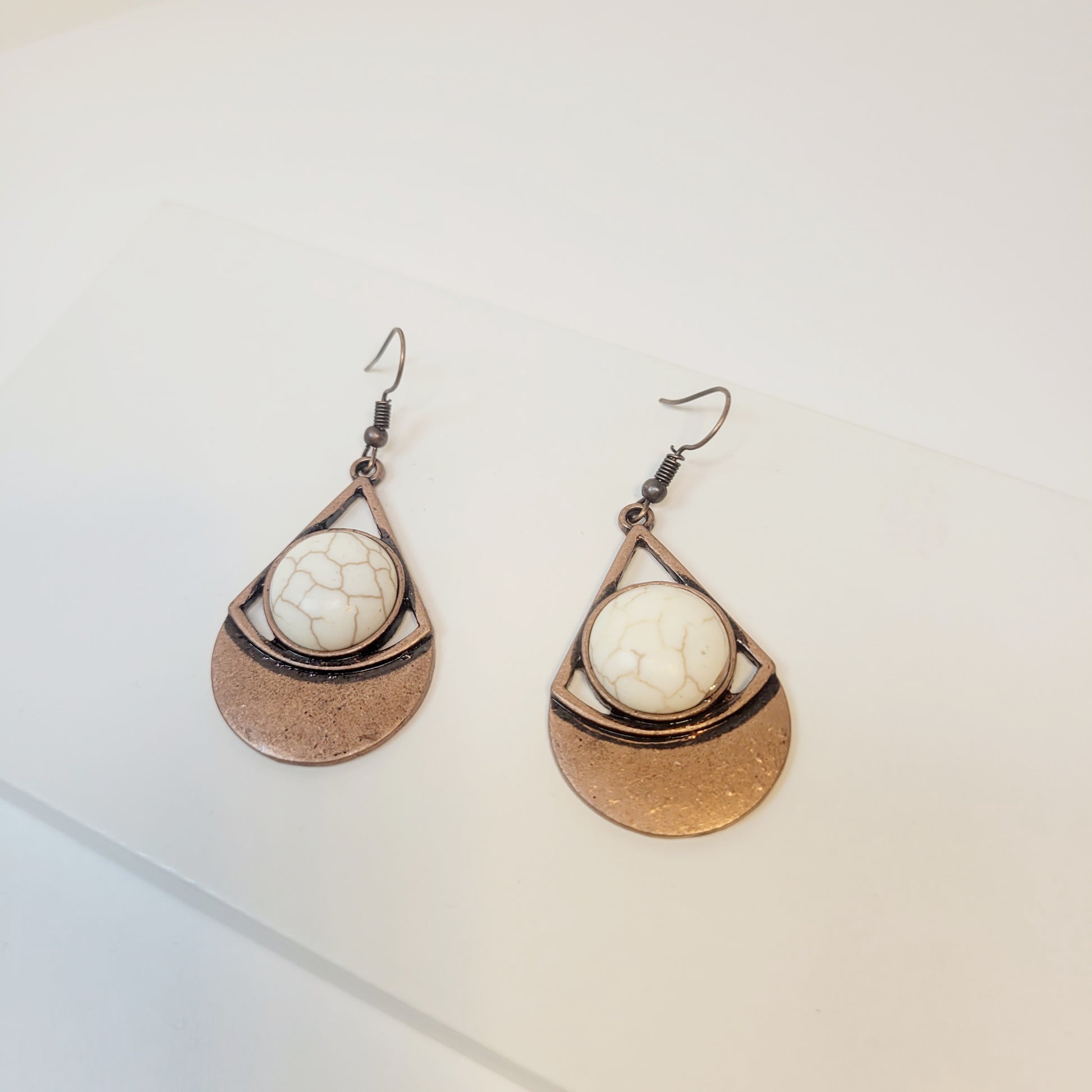 Enhance your style with these stunning bronze teardrop earrings, featuring a marble-inspired design for a sophisticated touch. Crafted with a sleek, bronze-toned finish, these lightweight dangle earrings measure 2.5 inches long.