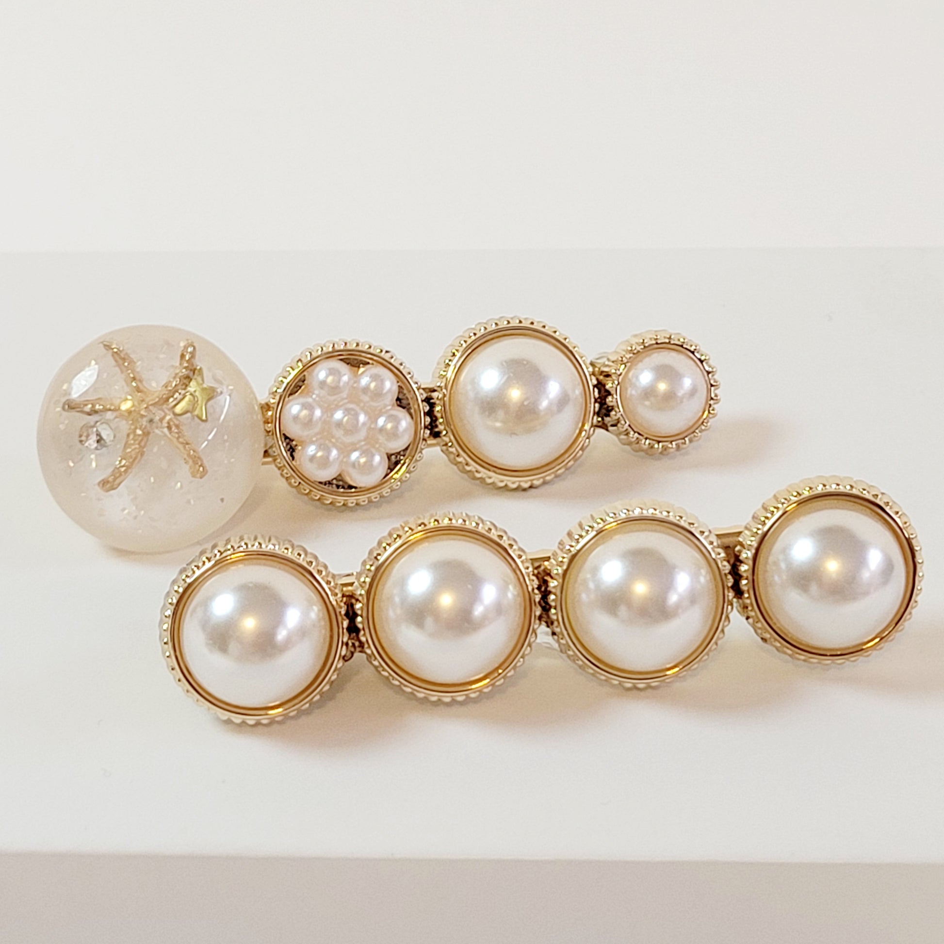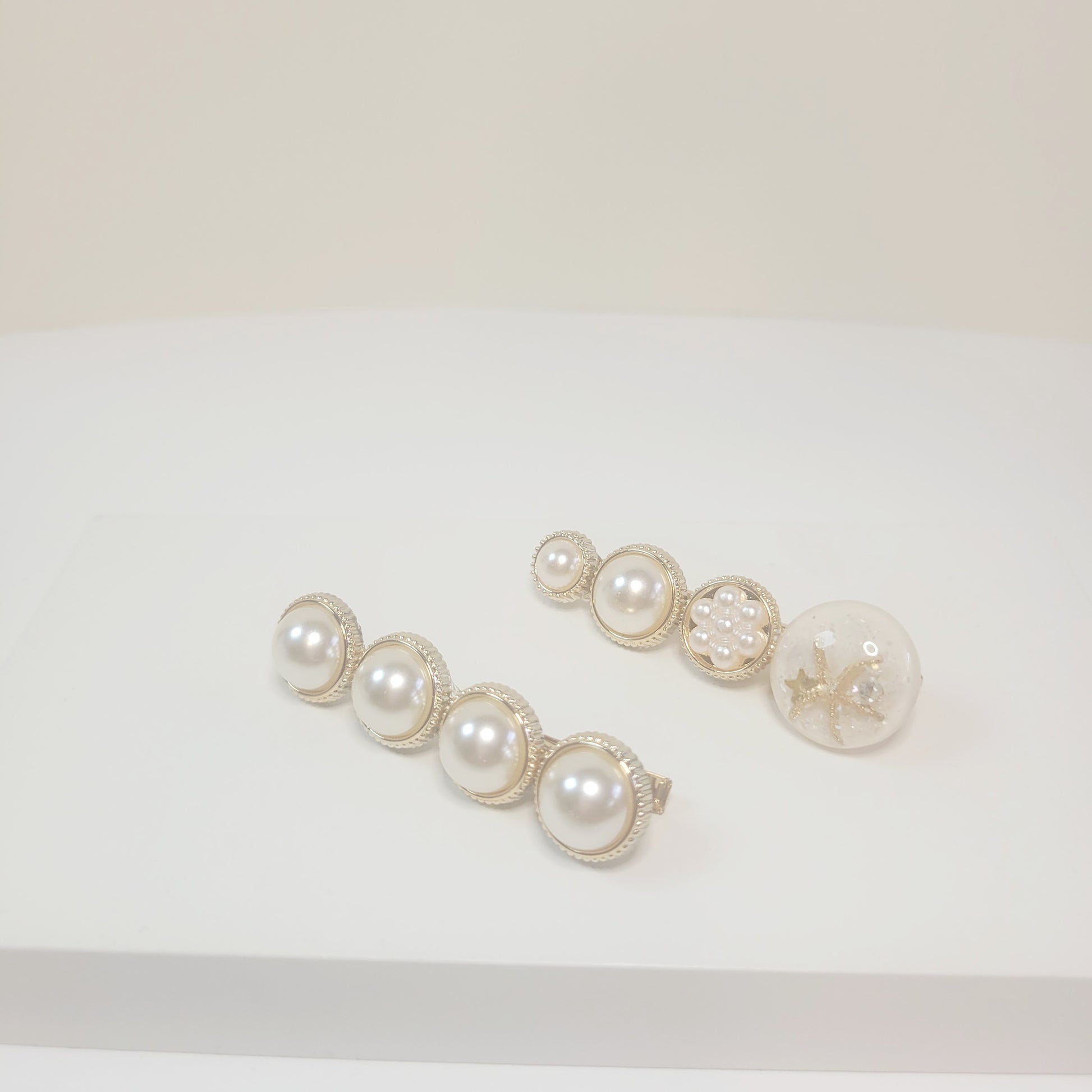 Designed with coastal charm for a summer-chic vibe. Featuring faux pearls alongside an intricately starfish detail, these clips bring a touch of beach-inspired beauty to any look.
