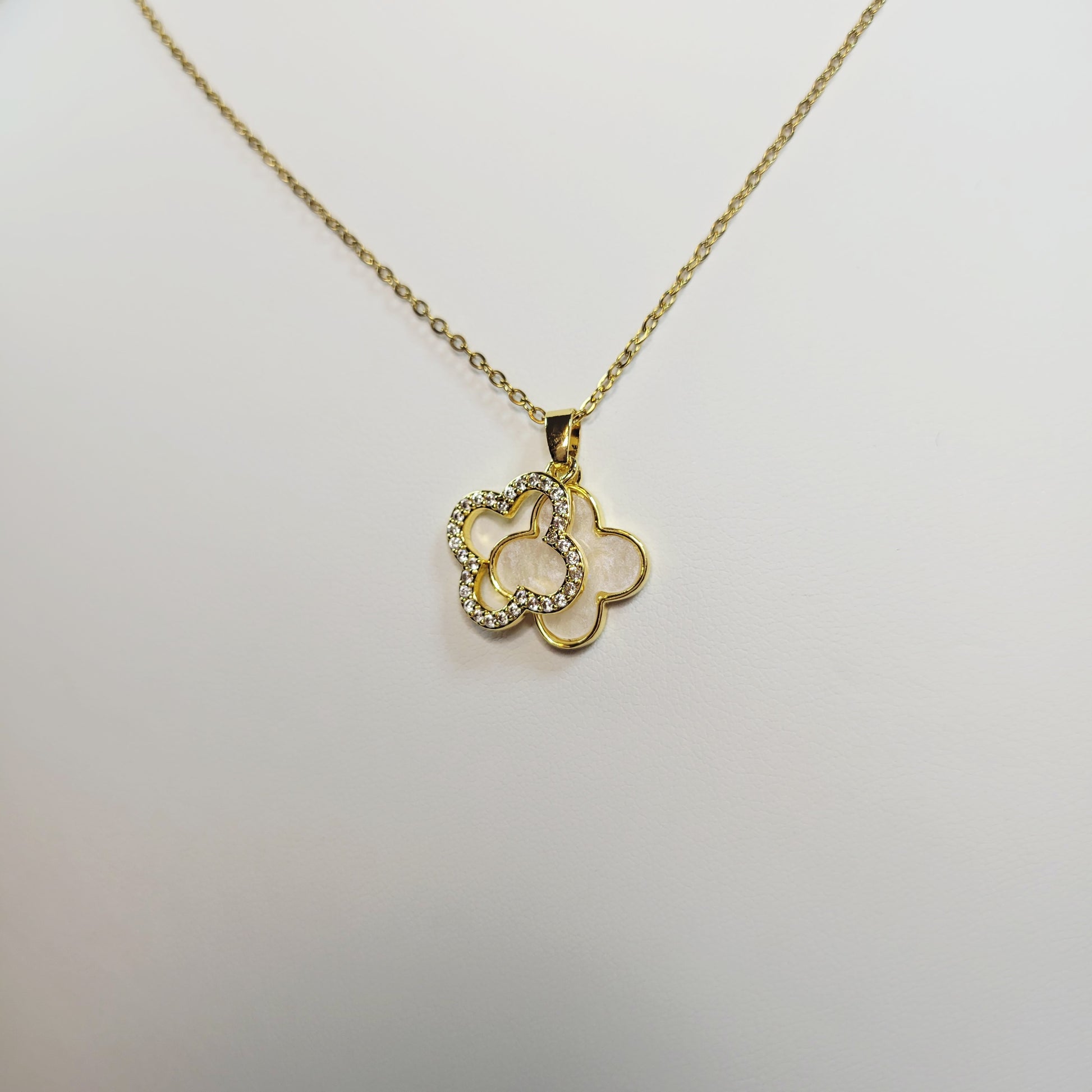 Dual Clove Rhinestone Pendant. Gold and Silver tones.